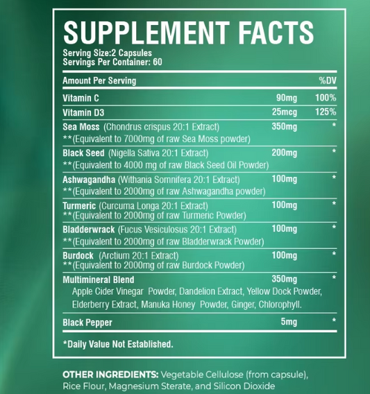 Sea Moss Supplement - Supports Thyroid Health, Anti-Aging, Antioxidant, Improve Immunity, Detox, Beauty Health